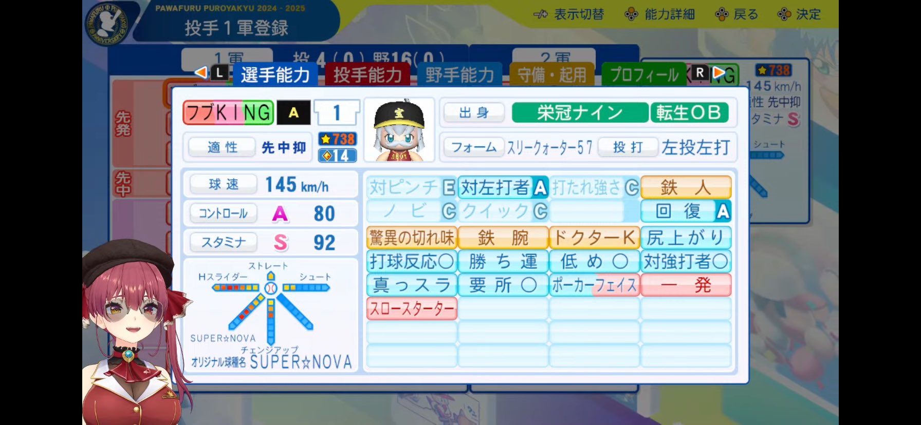 先発:白上フブキ1458092驚異の切れ味/ドクターK/対左A/対強打者○/尻上がり/勝ち運/スロースターター/一発
